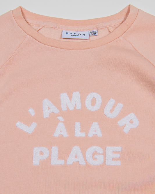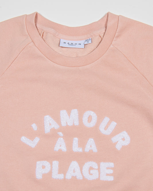 Sweat Femme Coton Bio L'AMOUR A LA PLAGE - Rose pastel