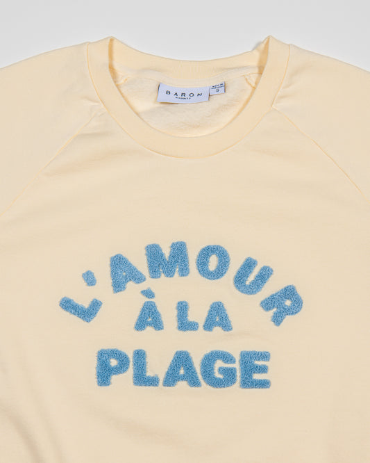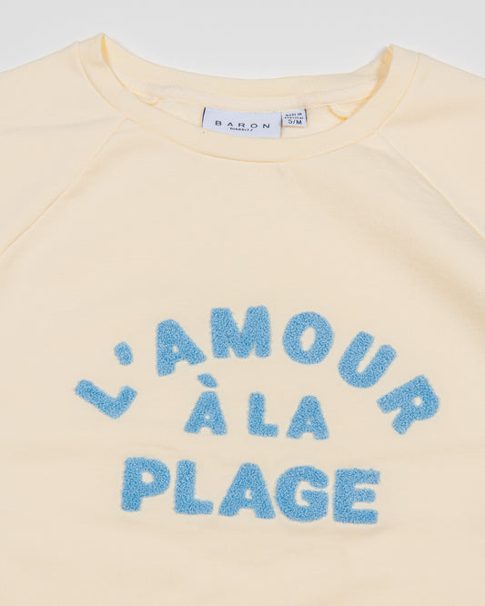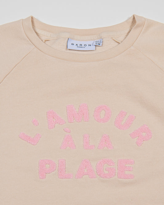 Sweat Crop top Coton Bio L'AMOUR A LA PLAGE - Beige crème