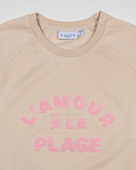Sweat Femme Coton Bio L'AMOUR A LA PLAGE - Beige crème